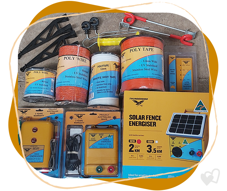 Secure, efficient and easy to install, electric fencing is a smart solution for controlling livestock and securing property boundaries. Sun Valley Produce offers durable, high-performance electric fencing systems suitable for backyard and rural applications. We stock Thunderbird electric fencing equipment that is excellent quality and all made right here in NSW. Whether you’re protecting crops & gardens, keeping out unwanted animals or just keeping your own animals in, our electric fencing ensures optimal safety without compromising convenience or budget.